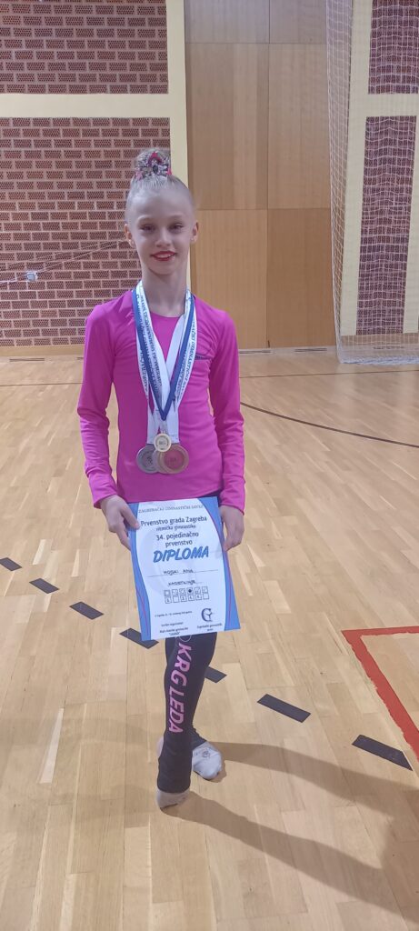 Na Prvenstvu grada Zagreba u ritmičkoj gimnastici, uz sudjelovanje četiriju kluba, naša učenica Ana Hojski iz kluba KRG “Leda” ostvarila je sjajne rezultate. U kategoriji s 11 djevojčica Ana je postigla odličan rezultat, a tim je osvojio:
