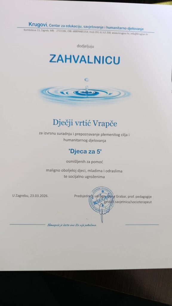 Posebno nas veseli što se humanitarnoj akciji priključio i Dječji vrtić Vrapče!