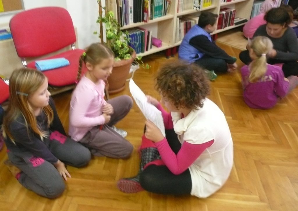Uključivši se u manifestaciju knjižnica Čitajmo naglas učenici 2. a razreda družili su se i čitali s učenicima 5. b razreda. Prvo druženje u ovoj školskoj godini održano je u školskoj knjižnici 23. listopada 2014. godine. Peti je razred čitao drugom igrokaze i priče, a drugi je razredi petom priredio nekoliko pjesama za čitanje. Ovi su se razredi družili u zajedničkom čitanju već prošle školske godine. Tema ovog prvog zajedničkog čitanja bila je ljubav.