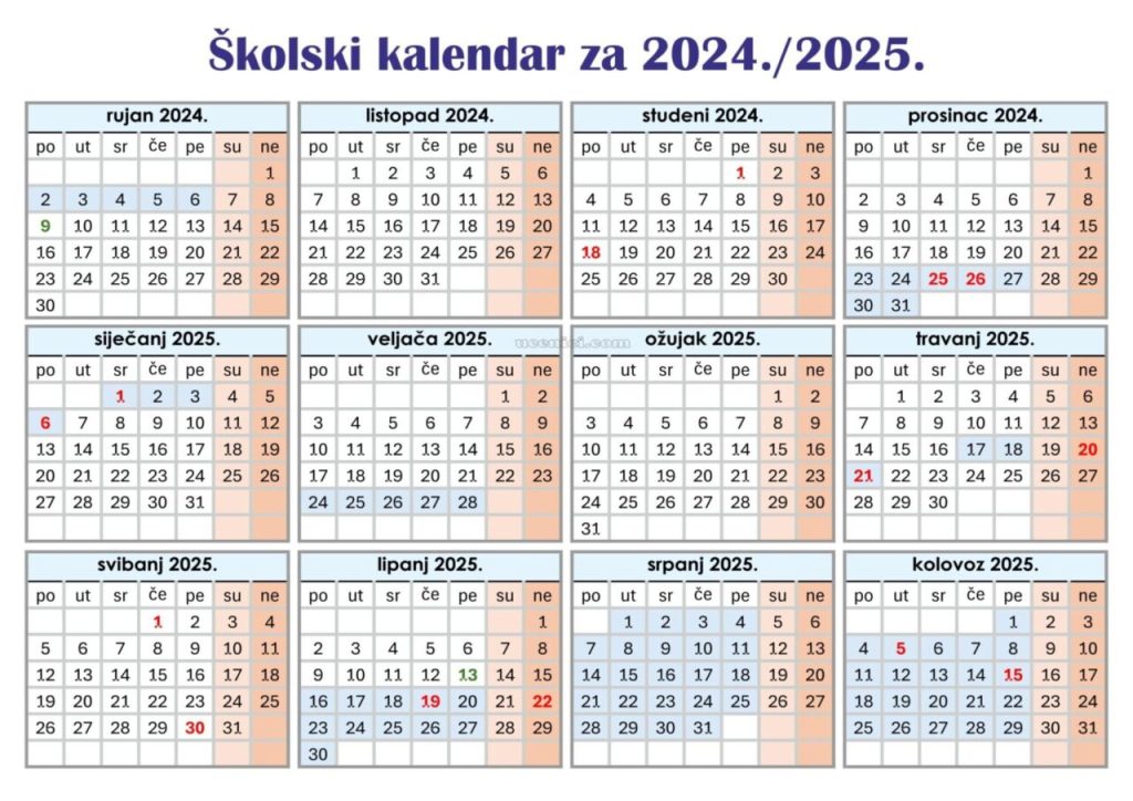Praznici u 2024./2025. raspoređeni na sljedeći način: